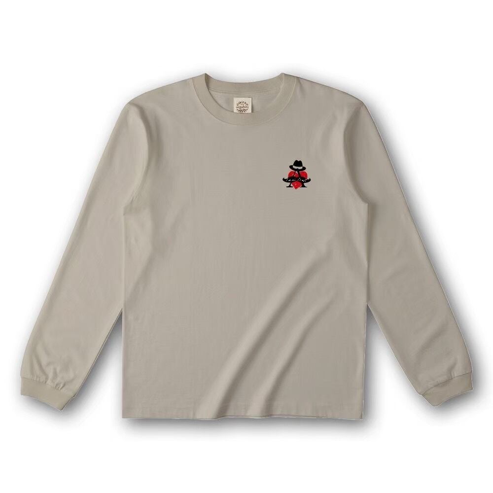オーガニックコットン100%の肌に優しい、着心地抜群のロンT。ワンポイントだから服を選ばずに着れる着やすさと、柔らかい色合いが特徴〇